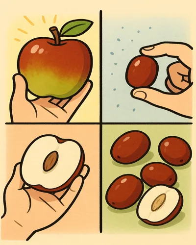 결국 사과대추는 가볍고 신선한 영양, 일반 대추는 진하고 농축된 영양으로 구분할 수 있습니다. 상황과 목적에 맞게 선택하면, 두 품종 모두 균형 잡힌 건강식으로 활용할 수 있습니다.